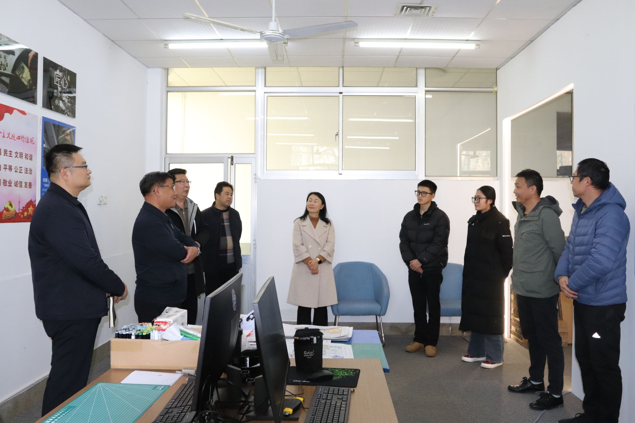 12月4日上午,学院党委副书记韩瑞东到奎文校区文化创意学院检查指导参赛师生集训备赛情况,看望慰问指导教师和参赛学生,并对获得第四届全国工业设计职业技能大赛一等奖的于泉城老师表示祝贺。党委委员、办公室(统战部)主任(部长)刘志艳,党委委员、组织人事处(离退休工作处)处长于涛以及文化创意学院相关负责人陪同。学院领导听取了指导教师和参赛选手的汇报,询问师生日常训练情况,详细了解备赛进度、技能掌握情况以及存在的问题和困难。...更多 -