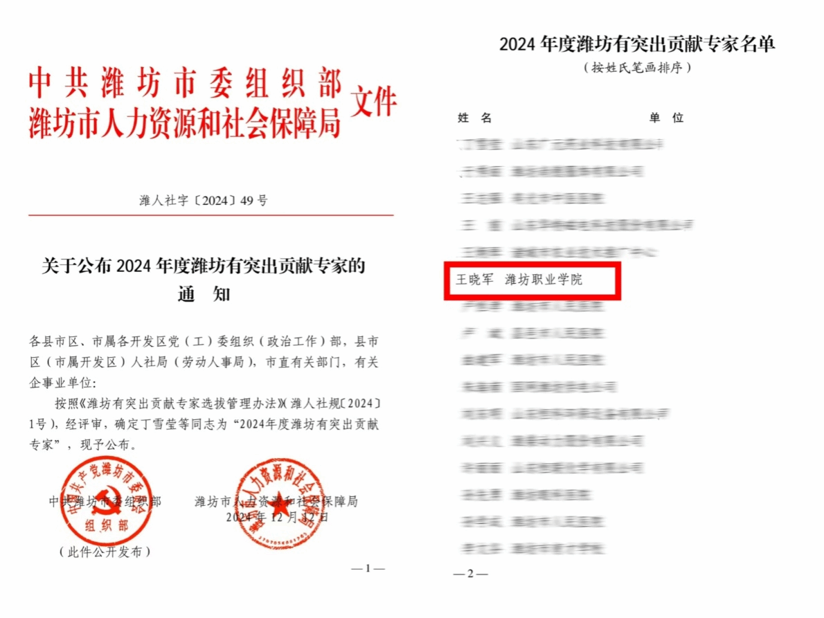近日,中共潍坊市委组织部、潍坊市人力资源和社会保障局正式公布了“2024年度潍坊有突出贡献专家”评选结果,我院王晓军老师获此殊荣。王晓军,中共党员,博士研究生在读,开云(中国)机电工程学院综合办公室主任,潍坊市重点实验室负责人,主要从事电气自动化技术专业教学科研,以及职业教育研究工作。参与国家社会科学基金项目、山东省社会科学规划研究项目、山东省人文社会科学课题、山东省教育科学规划等项目研究工作,取得了丰硕的成果。...更多