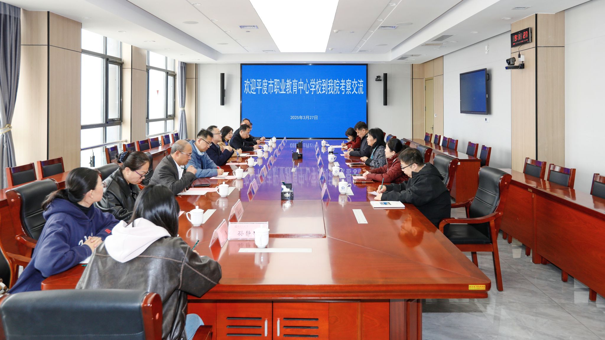 3月27日上午,平度市职业教育中心学校副校长郭洪波一行10人到我院考察交流。学院党委委员、宣传部部长鞠桂芹出席,农林科技学院主要负责同志及相关专业教师参加了活动。鞠桂芹与客人共同观看了学院宣传片,并对学院办学历史、基本情况以及近年来学院致力于双高建设取得的主要成绩进行了详细介绍。双方围绕专业建设、课程改革、师资培养、实训基地管理、国际化交流等内容展开了深入探讨。座谈会后,郭洪波一行实地观摩了农林综合实训基地,...更多 -