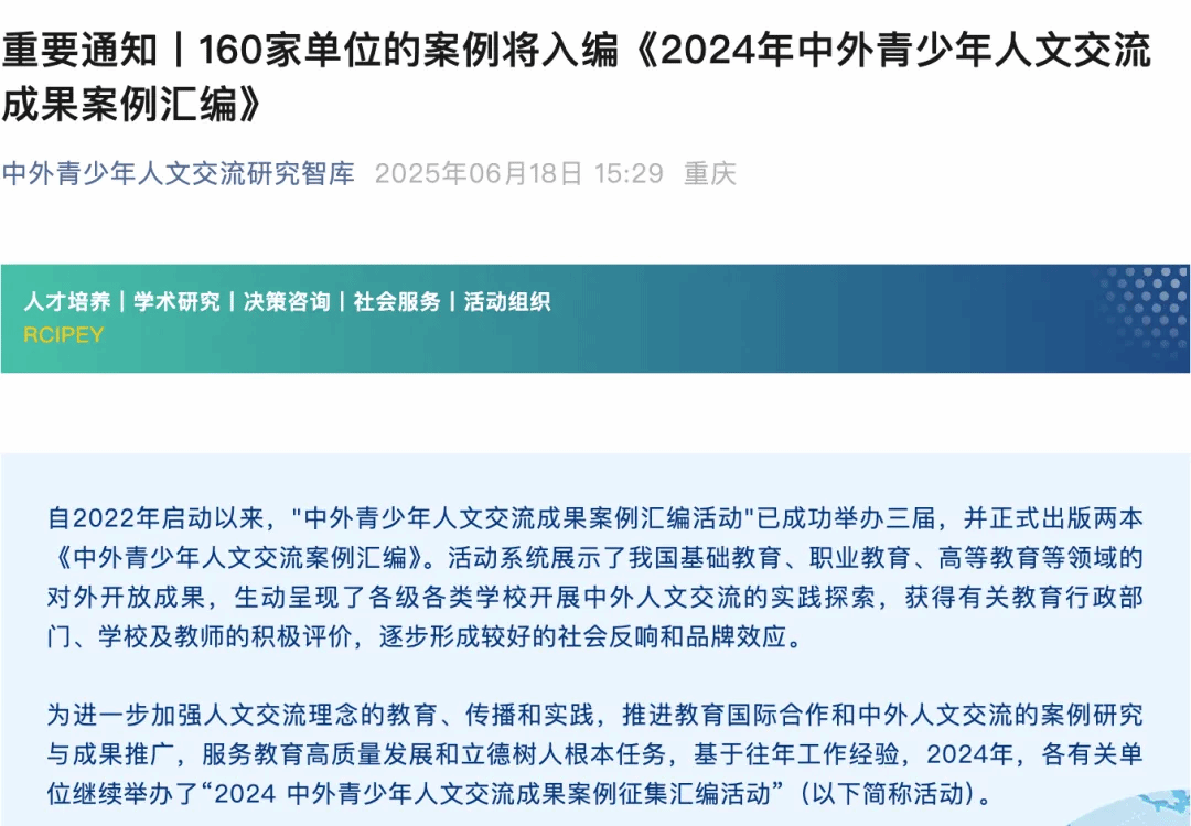学院案例入选教育部《2024年中外青少年人文交流成果案例汇编》