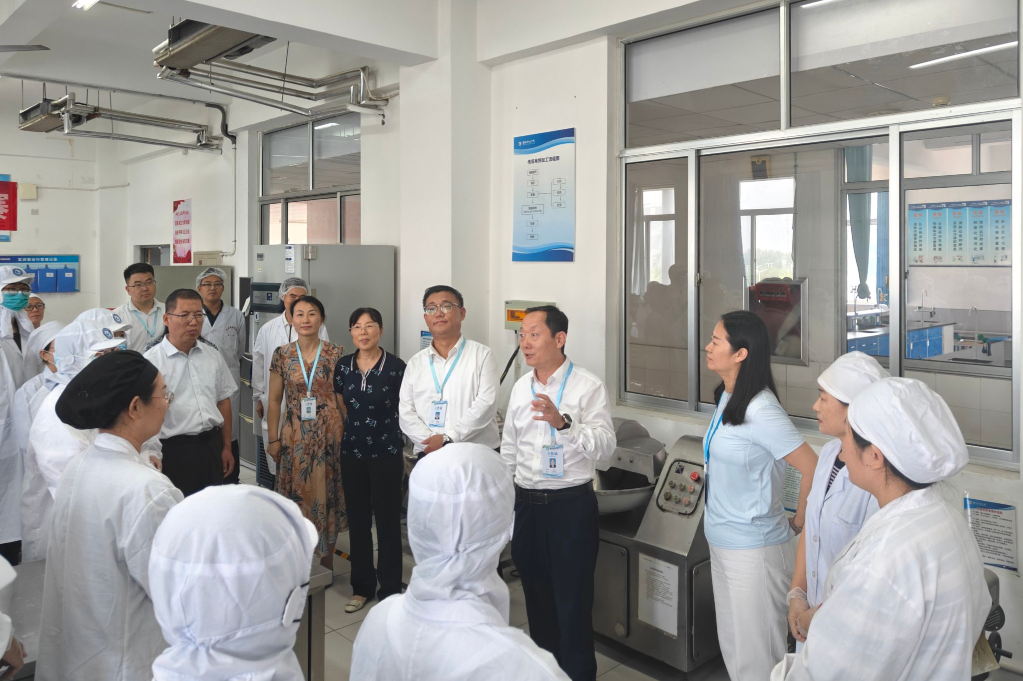 9月9日上午,学院党委书记王浩,院长韩瑞东,副院长陈美霞,党委委员、办公室(统战部)主任(部长)刘志艳一行到食品药品学院调研指导月饼生产实训,食品药品学院党政负责同志、分管教学负责同志及食品加工专业教师一同参加活动。王浩一行听取了食品药品学院关于月饼实训项目岗位设置、产品研发、质量管控及师生组织等方面的工作汇报,参观了月饼生产现场,详细了解了从原料挑拣、加工成型、烘烤到包装的全流程工艺,对实训项目给予了充分肯定。...更多 -