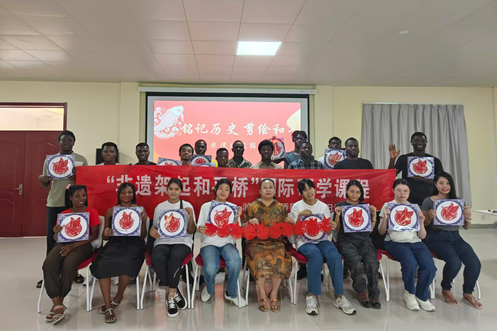 在中国人民抗日战争暨世界反法西斯战争胜利79周年到来之际,为铭记历史,传递和平,8月30日下午,国际教育学院联合潍坊市潍县西方侨民集中营旧址博物馆举办“铭记历史 剪绘和平”活动,来自加纳、巴基斯坦、泰国的20名国际学生参加了此次活动。 活动中,潍县西方侨民集中营旧址博物馆讲解员介绍了博物馆的历史变迁及所蕴含的和平主义精神。剪纸非遗传承人向国际学生介绍了剪纸的艺术风格、基本纹样以及操作技巧等,为学生们...更多 -