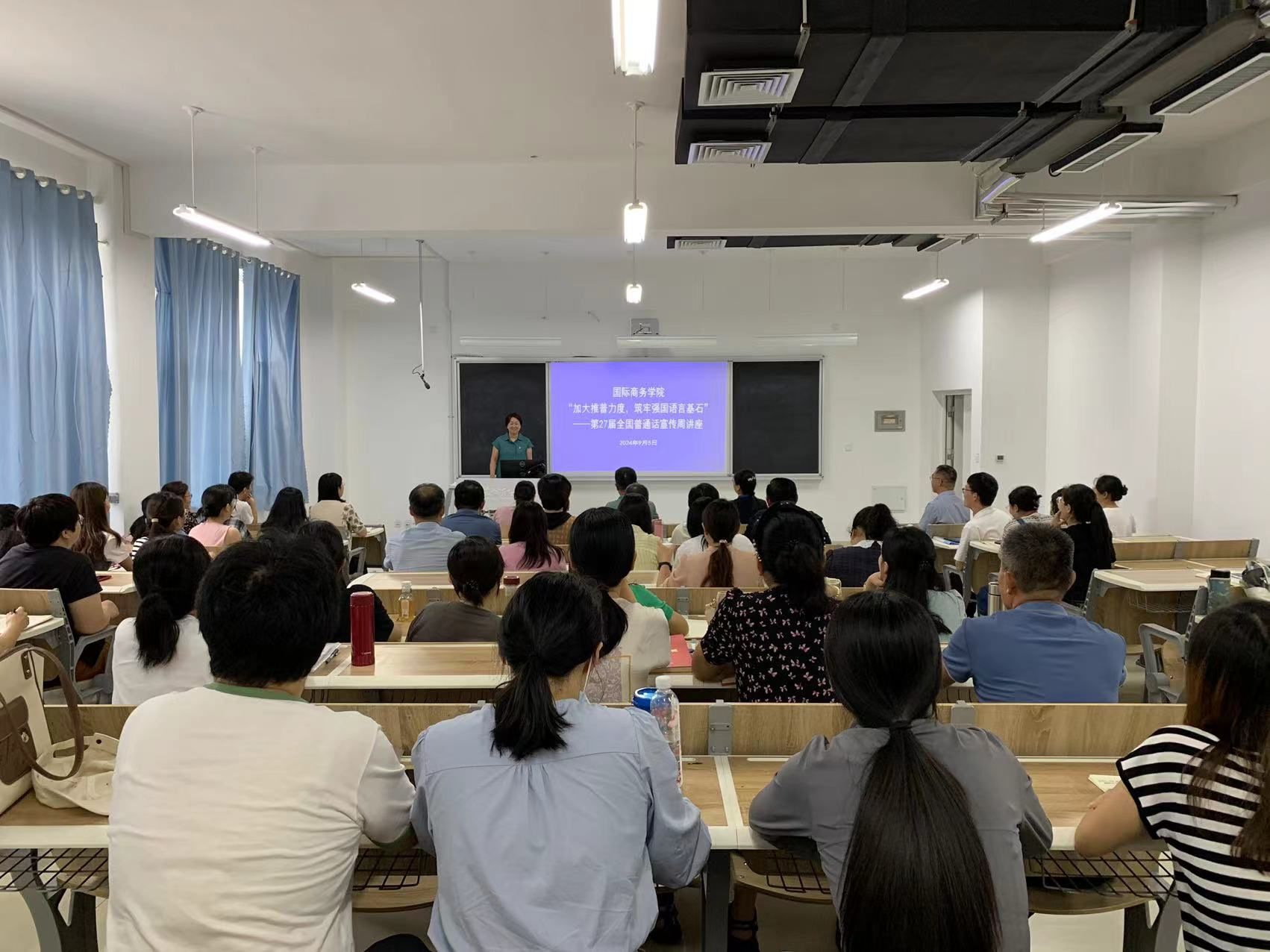 为切实做好2024年第27届全国推广普通话宣传周各项工作,9月16 日至9月22日,国际商务学院围绕“加大推普力度,筑牢强国语言基石”活动主题,以落实立德树人根本任务和铸牢中华民族共同体意识为主线,开展了推普系列活动。在活动开展阶段,我院积极响应学院号召,举办“推广普通话,弘扬中华文化”主题班会,深入学习普通话的重要性。组织学生绘制宣传板报,展示普通话的魅力和学习普通话的必要性。与此同时,为提升教师的文化素养与专业能力,...更多 -