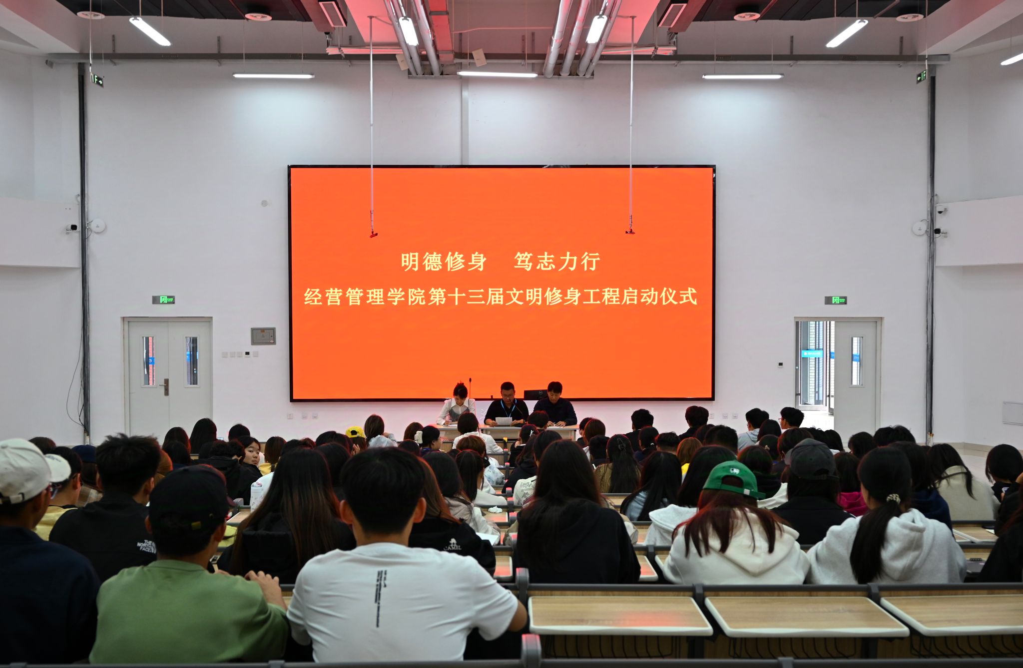 为深入贯彻党的二十届三中全会精神,提高大学生自我管理能力,引导大学生注重个人品德修养,更好地履行社会责任。经营管理学院于10月15日下午在智泽2号楼A117教室举行第十三届大学生文明修身工程启动仪式。经营管理学院辅导员代表、学生会主要成员及学生代表参加此次仪式。仪式开始,辅导员代表宣读了《经营管理学院第十三届大学生文明修身工程实施方案》,强调了文明修身工程的重要性,并围绕“明德修身,笃志力行”的主题,对全体学生提出了具体要求,...更多 -