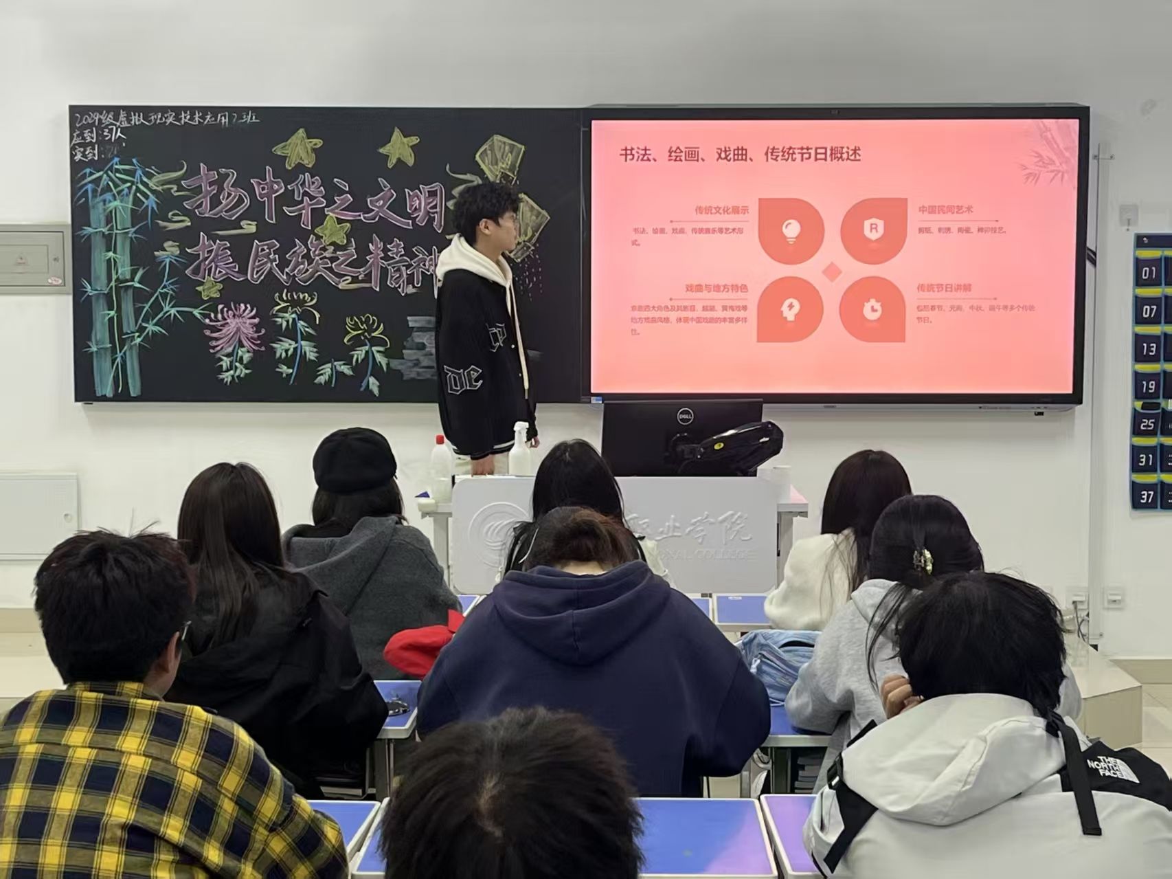 为深入贯彻落实党的二十大关于推进文化自信的相关决策部署,进一步落实立德树人根本任务,帮助同学们深入了解中华优秀传统文化的魅力与内涵,提升文化素养,培养文化自信,4月10日,信息工程学院组织开展“扬中华之文明,振民族之精神”教育活动。活动中,各班学生干部以“思想传承+艺术体验”的双轨形式向同学们普及传统文化知识,带领同学们了解了孔子的“仁爱”思想与老子的“无为而治”哲学思想,并鉴赏了剪纸作品。在专题讲解环节,...更多 -
