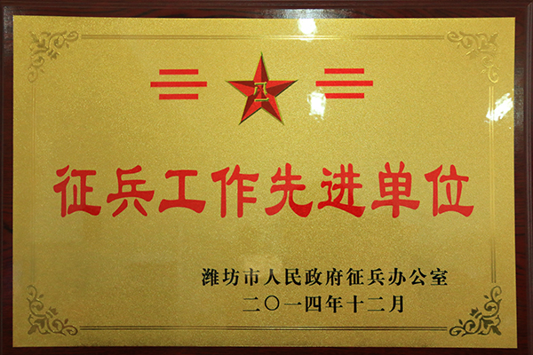 近日,从潍坊市征兵工作办公室获悉,2014年度征兵工作表彰会暨2016年度兵役登记动员会议召开,会议对2014年度征兵工作中成绩突出的单位和个人进行了表彰,我院荣获2014年度潍坊市征兵工作先进单位称号。这是我院自2011年以来第二次获此荣誉。