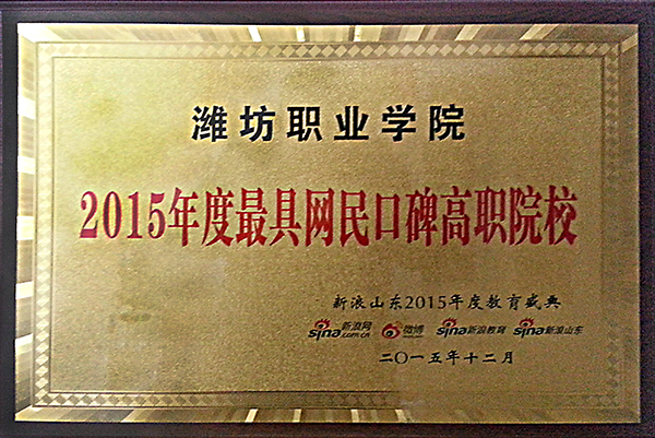 近日,由新浪网、新浪微博、新浪教育和新浪山东主办的“新浪山东2015年教育盛典”获奖榜单出炉,我院获评“2015年度最具网民口碑高职院校”。我院已连续两年获此殊荣。