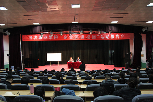11月20日,我院第四十七次“企业家进校园”活动报告会在奎文校区报告厅举行。潍坊假日国际旅行社有限公司总经理杜振华作了题为“旅游的昨天、今天、明天”的报告。国际商务学院负责同志主持报告会,招生就业处相关人员、国际商务学院师生参加了报告会。