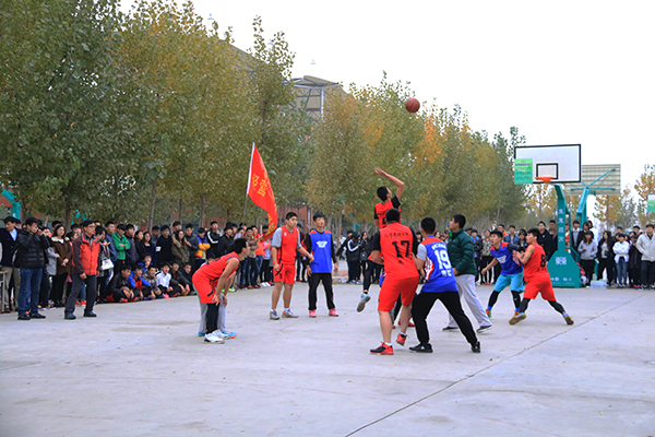 开赛式上,团委学生工作处负责同志致开幕词,随后裁判员代表、运动员代表分别进行宣誓。随着一声哨响,篮球赛正式开赛。本次篮球赛采取小组循环赛制进行。比赛中,队员们娴熟的运球、漂亮的抢断、精彩的投篮动作博得在场师生阵阵掌声。赛场上欢呼声、呐喊声此起彼伏,来自师范/文化创意学院的同学们精彩的啦啦操表演为篮球赛活跃了气氛。