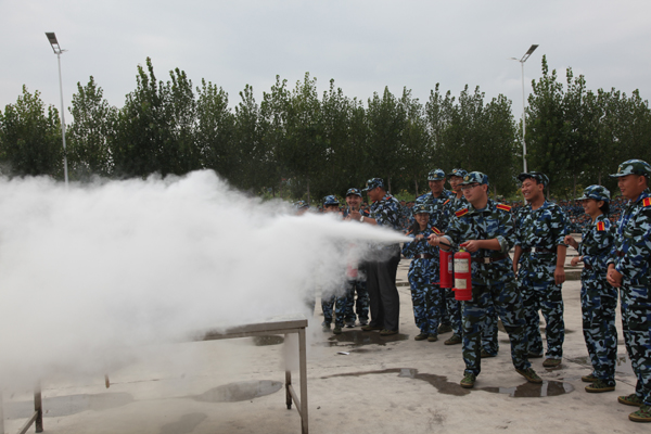 14点30分,随着演习总指挥一声令下,现场演习正式开始。模拟火险现场,工作人员拉开发烟罐,警报器随之响起,同学们在辅导员(班主任)及宿舍管理人员的引导下,捂着口鼻、采取蹲姿扶着墙壁迅速、有序向宿舍楼外撤离,在体育场整队集结清点人数并向演习总指挥报告,团委学生工作处负责同志对疏散演习进行了点评和总结。整个疏散演习过程时间短、速度快,井然有序,没有发生任何安全事故,达到预期效果。随后,全体人员到达篮球场进行消防灭火演练,消防人员向全体新生讲解了消防知识并对灭火器使用方法进行了演示,部分学生在消防人员的指导下体验使用灭火器。