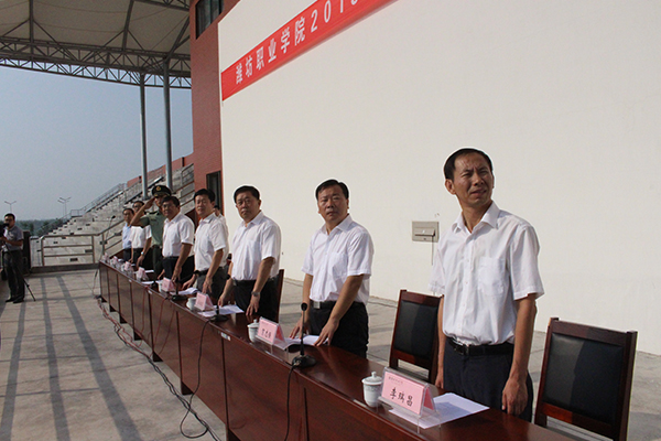 9月8日、9日上午,我院2015级新生开学典礼暨军训动员大会分别在滨海校区、奎文校区体育场隆重举行。学院院长王家爱,滨海区党工委委员、滨海区大学园管理办公室主任范梅庆,驻潍某部连长王秉昕,学院党委副书记宋桂言,副院长赵君堂、贺志强、毕建华,纪委书记李瑞昌出席。