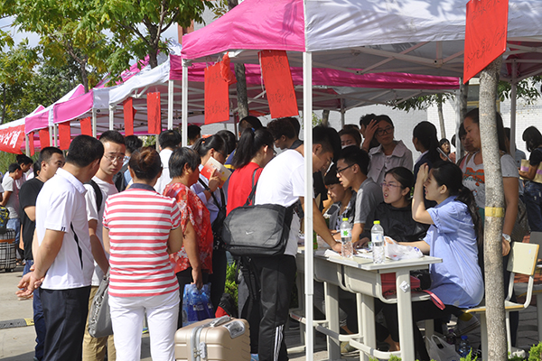 今年的迎新工作,学院领导高度重视,专门成立了迎新工作领导小组,8月31日召开了迎新工作调度会,落实分工责任,细化工作流程,要求一切以服务学生为本,用最热情的服务优质完成迎新工作,让学生满意、让家长放心。迎新过程中,我院推行了多项人性化举措:在火车站、汽车站,学院设有接站点,每位新生都可以在学生志愿者的引领下顺利到达校园;新生报到、缴费点集中在承泽楼,食宿用品发放分布各公寓楼,开展一站式服务,免去家长学生来回奔跑之苦;校园里多处设置了饮水处,大二学生为新生和家长热情引导;加强安保力量,在校园主要路段疏导车辆,确保新生报到安全有序;咨询处、缴费处、各二级学院报到处等标志醒目有序……一系列温暖而细致的服务举措赢得了新生和家长的广泛好评。来自临沂的一位家长由衷地赞叹:“学校里绿树成荫,干净整洁,环境很好,能感觉到很浓厚的学习氛围,希望孩子在这里好好成长。”