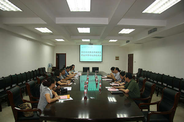 8月13日,青岛市城阳区职业中等专业学校刘同珂校长一行7人来我院考察交流。副院长贺志强在会议室会见了客人,教务处、招生就业处、汽车工程学院负责同志参加座谈。