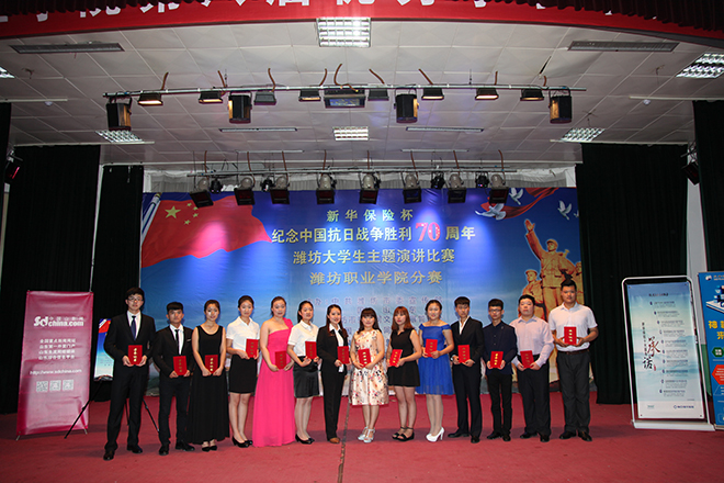 “纪念中国抗日战争胜利70周年”潍坊大学生演讲比赛由潍坊市委宣传部、中国山东网、潍坊市互联网文化发展管理处主办,中国山东网潍坊频道承办,新华保险潍坊支公司、山东贝丰科技以及驻潍十四所院校共同协办,将于7月3日举行总决赛。我院此次演讲比赛为该活动的一部分。