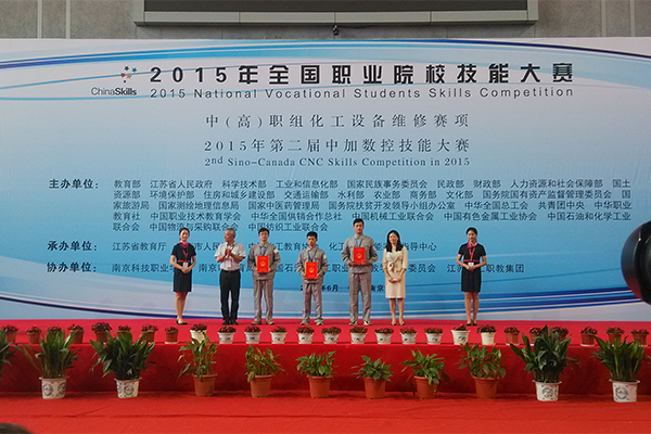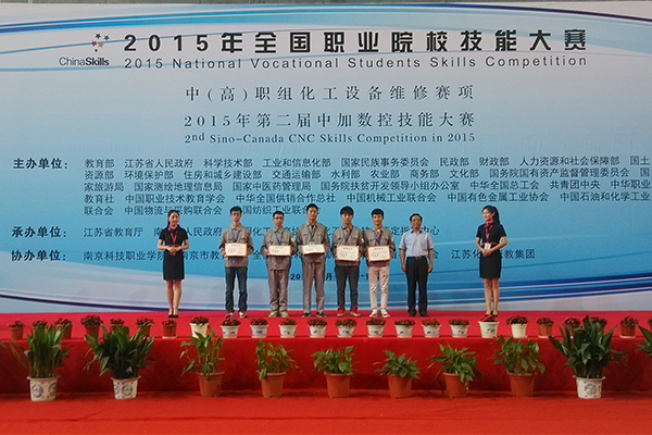 6月9日至12日,由教育部、江苏省人民政府等主办,江苏省教育厅、中国化工教育协会等承办的2015年全国职业院校技能大赛化工设备维修赛项在南京科技职业学院举行。来自全国各省、直辖市、自治区的58所中高职院校的116名选手分别在化工设备维修专业基础、镶配件制作、化工设备检验、机泵拆装运行项目上展开激烈角逐。我院高职组选手朱林森、房锐同学获得团体二等奖,中职组王超、王华华同学获得团体三等奖。朱林森以全国第三名的成绩破格晋升技师资格,成为山东省首个学生身份的化工检修钳工技师。