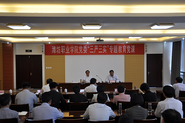 5月19日,学院党委在滨海校区清泽楼举办“三严三实”专题教育党课,正式启动全院县处级以上领导干部“三严三实”专题教育。专题党课由潍坊市政府党组成员、学院党委书记陈仁杰主讲。学院领导及各部门、各二级学院副处级领导干部聆听了党课。学院院长王家爱主持党课。