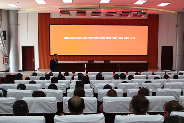 为落实潍坊市政府办公室关于《全市开展全员消防培训演练集中活动实施方案》通知精神,进一步增长全院各重点岗位工作人员的消防安全知识,提高消防应急处置能力,学院邀请潍坊政安防火技术有限公司的两名消防专家,于5月20日、21日分别在奎文、滨海校区为我院开展消防知识培训。安全保卫处、学生公寓管理中心、饮食服务中心、物业管理中心、学院招待所、保安等人员参加了培训。