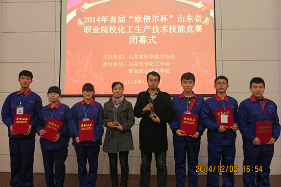 首届“欧倍尔杯”山东省职业院校化工生产技术技能竞赛12月2日在青岛职业技术学院落幕。我院选派中高职学生组成的两支代表队分别获中高职竞赛团体奖第一名,6名学生分别获中高职个人全能一等奖的前3名,4名教师获“优秀指导教师”称号,我院获优秀组织奖。