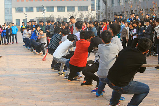 为了丰富学生的课余文化生活,增进学生之间的交流,培养学生的团队协作精神,师范/文化创意学院近日在滨海校区惠泽楼前举办了一场别开生面的拔河比赛。此次拔河比赛共有26支队伍参加,采用淘汰制与循环制相结合的形式进行。经过激烈的体力和耐力的较量,最终2013级广告与会展班夺得比赛第一名。(徐建磊供稿)