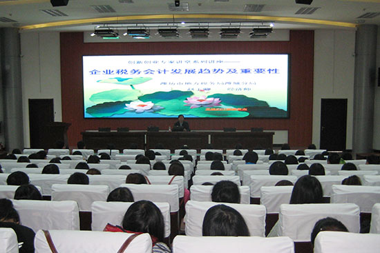 10月31日下午,经营管理学院邀请潍坊市地税局潍城分局法规税政科科长赵玉卿,在滨海校区报告厅为300余名师生作了“企业税务会计发展趋势及重要性”专题讲座。本次讲座是该院举办的“创新创业专家讲堂”系列讲座的第三场。