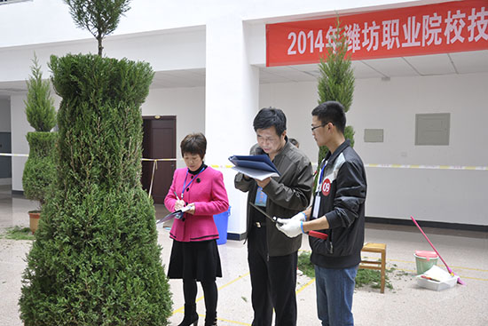 园林植物修剪项目竞赛现场,参赛选手挥动手中的剪刀,不一会一排婀娜多姿、整齐美观的松柏盆景展现在大家面前。我院园林工程学院负责同志说:“通过大赛展示了园林专业学生勇于开拓、不断进取的良好精神风貌,培养了一批绿化修剪操作能手和技能人才,促进了园林技术专业办学水平的提高。”(孙栋阁 冯立建供稿)