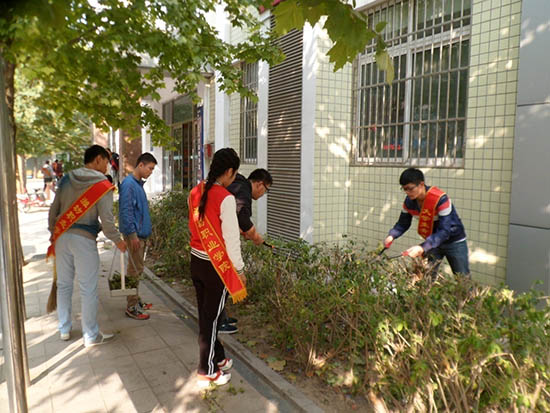 活动中,机电工程学院120名志愿者分成4个大队12个小组,在社区负责人的带领下,承担起早春园小区室外区域全部的卫生清理工作,包括清扫广场卫生,捡拾草坪上的垃圾,清理张贴的小广告,搬运废弃的家具等等。经过3个多小时的义务劳动,使小区30栋楼外的环境卫生大为改善,得到社区居民的一致好评。园林工程学院20名志愿者发挥自己的专业特长,为卧龙社区居民打扫社区卫生,修剪绿化植物,用自己的专业技能为创建文明城市贡献一份力量。大学生青年志愿者协会的 20名志愿者,到定点服务基地潍坊市福利院,继续开展清扫卫生、陪老人聊天等志愿服务活动。
