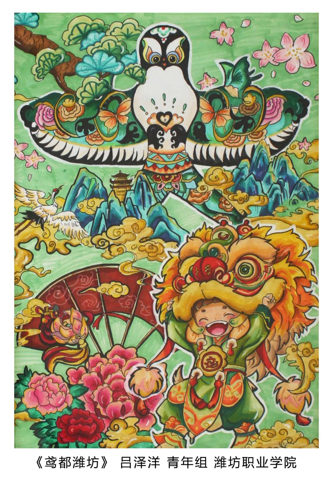 本次大赛以“青春中国·更好潍坊”为主题,旨在以笔墨丹青为媒描绘魅力潍坊的美丽画卷,展现潍坊在政治、经济、文化等方面的新气象、新成就。自活动开展以来,学院精心组织,有序推进,组织学生深入一线采风,挖掘鲜活素材,鼓励广开思路、发挥想象力,描绘心中的更好潍坊,用画笔讲述潍坊故事、传播潍坊形象,抒发爱潍兴潍情怀。经严格评选,文化创意学院吕泽洋同学的作品《鸢都潍坊》和孔静怡同学的作品《云门印象》获评青年组二等奖。