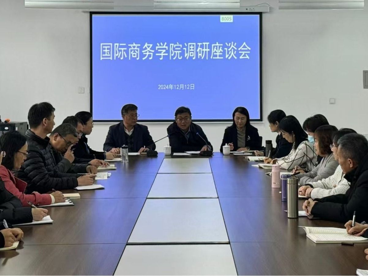 12月12日下午,学院党委副书记韩瑞东,党委委员、办公室(统战部)主任(部长)刘志艳深入国际商务学院进行调研,与全体教师座谈交流。国际商务学院主要负责人主持座谈会,全体教师参加座谈。