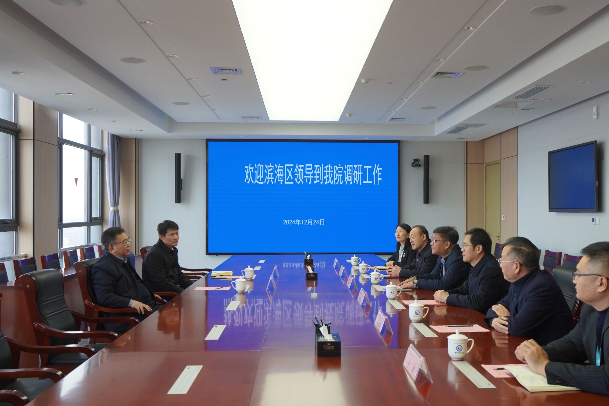 12月24日上午,潍坊滨海经济技术开发区党工委书记、管委会主任韩文宏,滨海区党工委委员、党政办公室主任张鹏来我院调研。学院党委副书记韩瑞东,党委委员、纪委书记、监察专员王国成,党委委员、副院长赵宏坤,党委委员、副院长任培华,党委委员、办公室(统战部)主任(部长)刘志艳,党委委员、组织人事处(离退休工作处)处长于涛参加座谈调研。