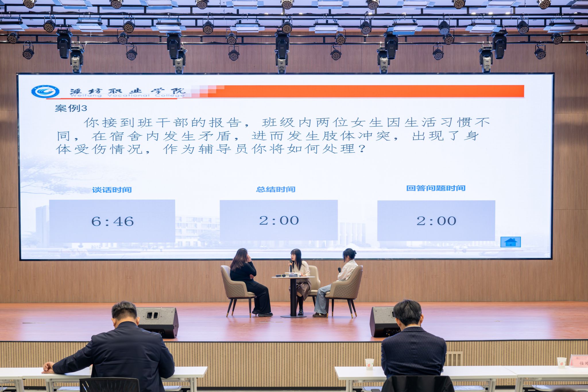 本届比赛12月18日启动,分初赛和决赛两个阶段,包含基础知识测试、案例研讨、谈心谈话三个环节。基础知识测试重点考察辅导员的理论素养和业务知识;案例研讨主要考察辅导员综合运用理论分析问题、研判问题、解决问题、应急处突的能力;谈心谈话主要考察辅导员对学生特征、学生成长成才规律的了解把握程度,对学生的教育引导能力、解决理论困惑和实际问题的能力等。经过激烈的角逐,汽车工程学院陈宁等3人获一等奖、国际商务学院尹寒梅等5人获二等奖、机电工程学院张政等8人获三等奖。
