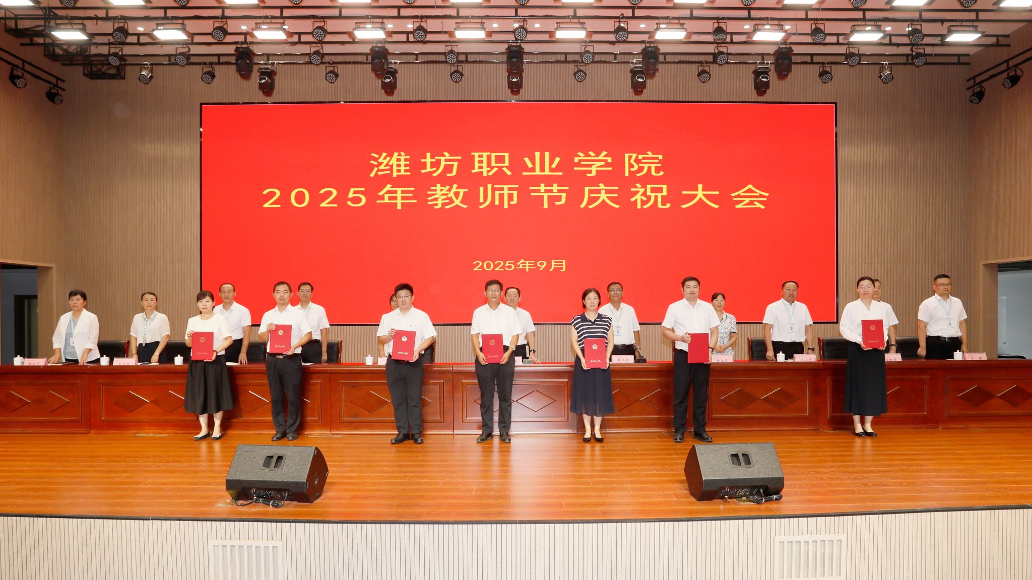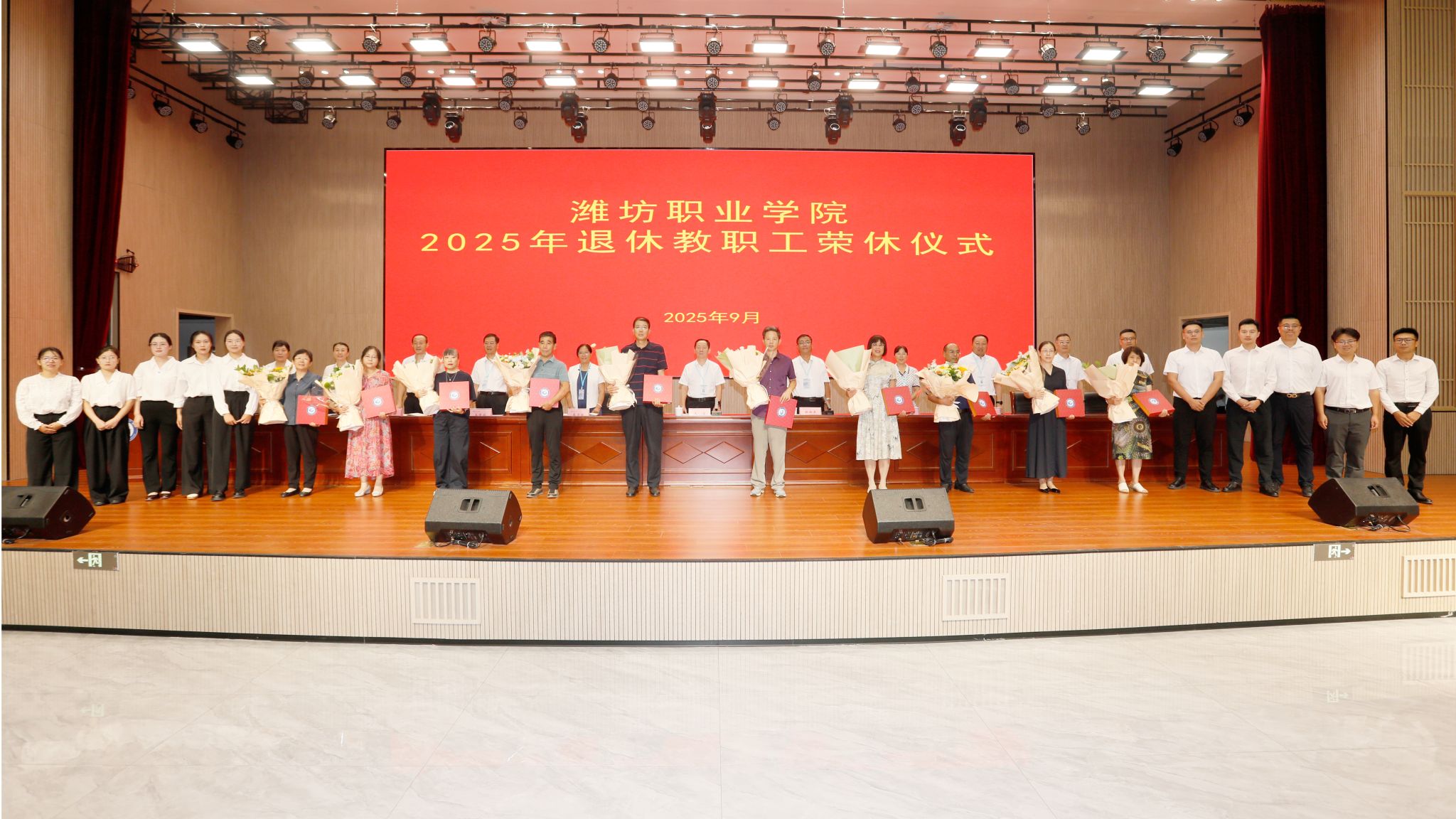 本次教师节庆祝大会暨荣休仪式在热烈而温馨的氛围中圆满落幕。大会不仅弘扬了尊师重教、崇智尚学的优良传统,也充分展现了潍职人团结奋进、薪火相传的精神风貌。荣休教师们的奉献与坚守,优秀教师的卓越与担当,都将激励着全体教职工以更加饱满的热情投身教育事业,共同谱写学院高质量跨越式发展的新篇章。师道永续,初心不渝;致敬芳华,汇聚前行。愿每一位教师桃李芬芳,节日快乐!(赵超供稿)