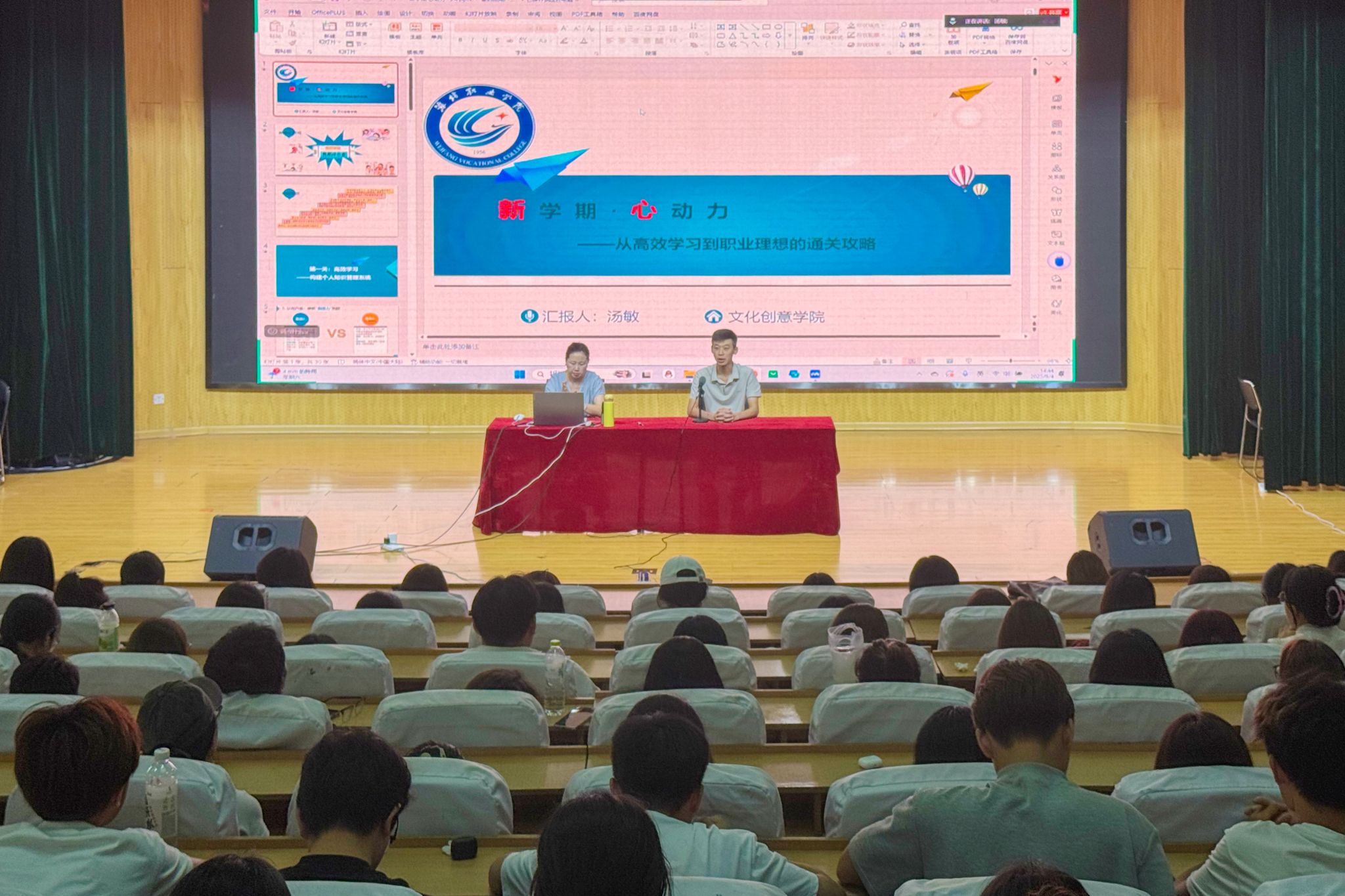 讲座由国家二级心理咨询师汤敏主讲,汤老师以《新学期·心动力——从高效学习到职业理想的通关攻略》为题,通过暖场小游戏和快问快答切入,聚焦“假期综合症”,围绕同学们遇到的“三大关卡”开讲。