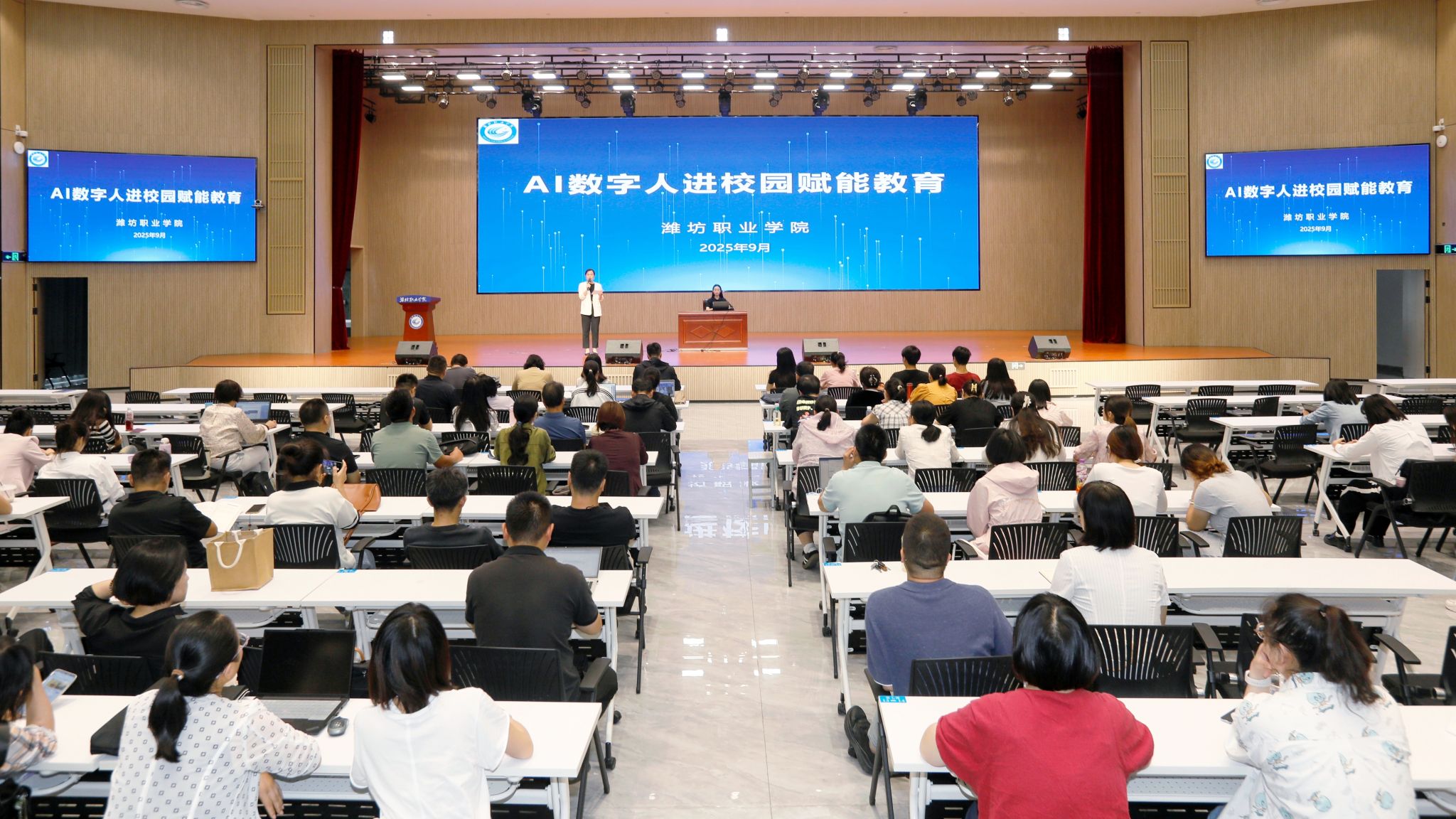 9月18日,为助力学院一线教师紧跟时代步伐,提升数字素养与创新能力,探索人工智能赋能教育教学、科研新途径,我院携手潍坊市中华职业教育社、华为集团,组织开展“AI数字人进校园赋能教育”培训活动。各教学部门骨干教师110余人参加培训。
