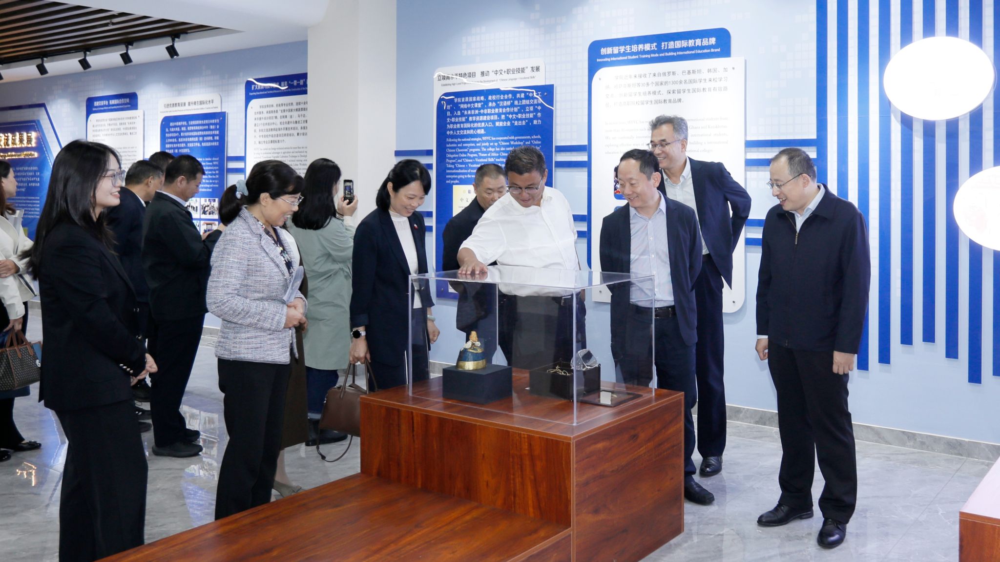 张华一行在参观中对学院国际化办学成果及特色展区建设予以高度评价,同时结合因公出国管理工作需求,现场分享潍坊市外办的职能定位与实践经验。他表示,此次到访旨在精准对接学院需求,充分发挥市外办的政策引领与桥梁纽带作用,通过指导学院规范因公出国流程、优化涉外资源对接,共同构建顺畅、规范的外事工作体系,为师生国际交流搭建更广阔的平台。