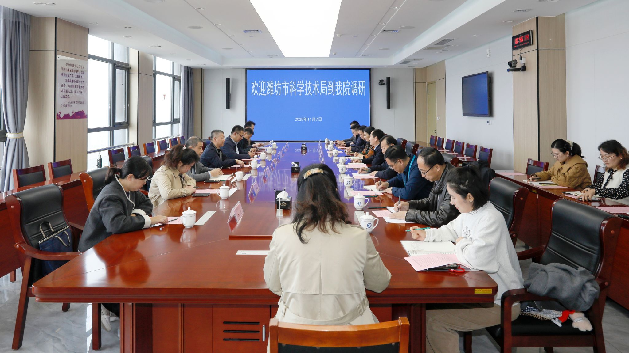 11月7日上午,潍坊市科学技术局党组成员、副局长董书礼及相关科室负责人一行7人到我院开展科技工作调研座谈。学院党委书记王浩、党委副书记贺志强陪同调研,办公室、科技处、机电工程学院、化学工程学院负责人和部分博士代表参加座谈。