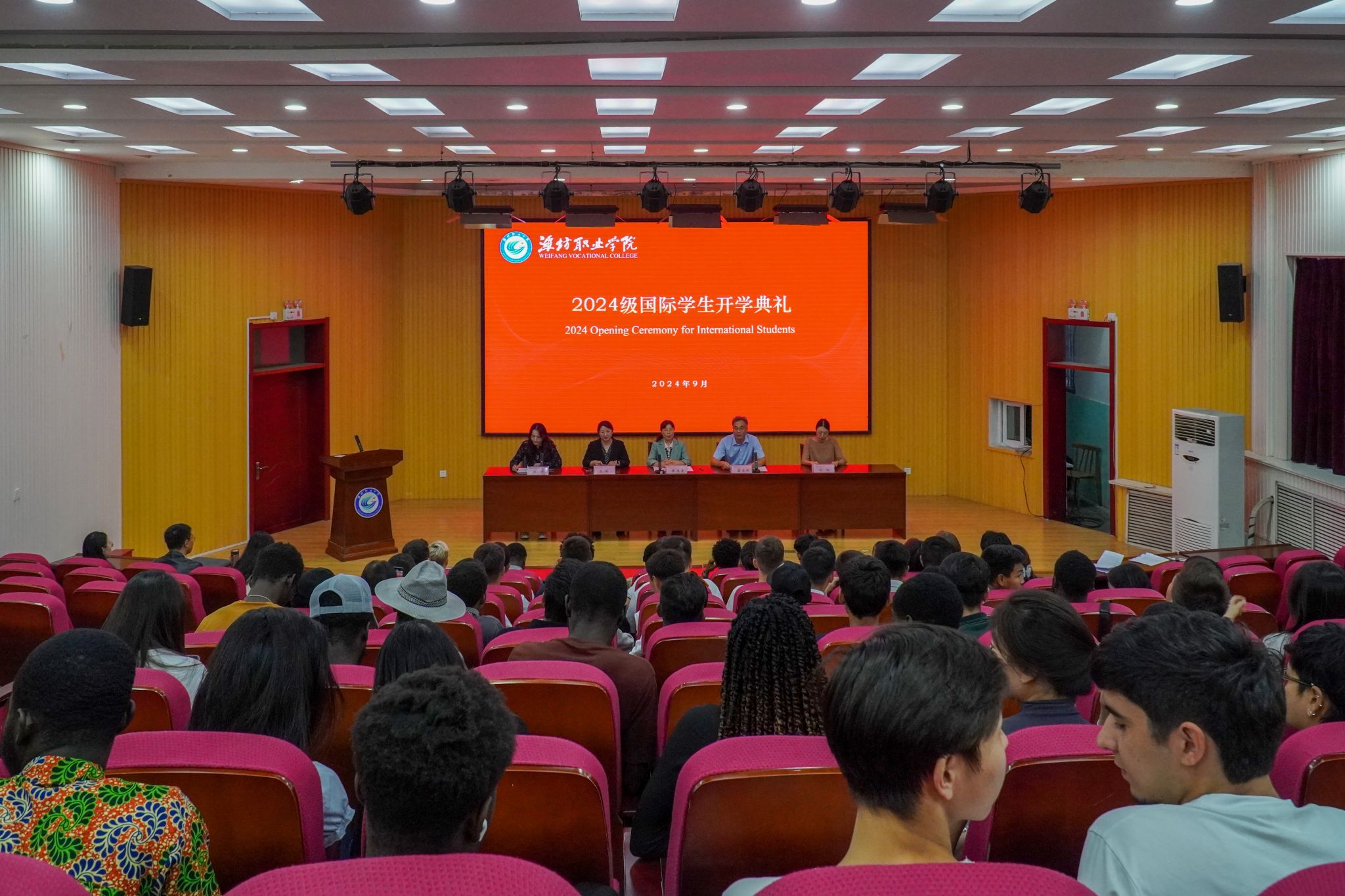 9月27日下午,学院国际学生开学典礼在奎文校区6号楼报告厅隆重举行。学院副院长陈美霞、国际教育学院主要负责人以及国际教育学院全体师生共同参加典礼。