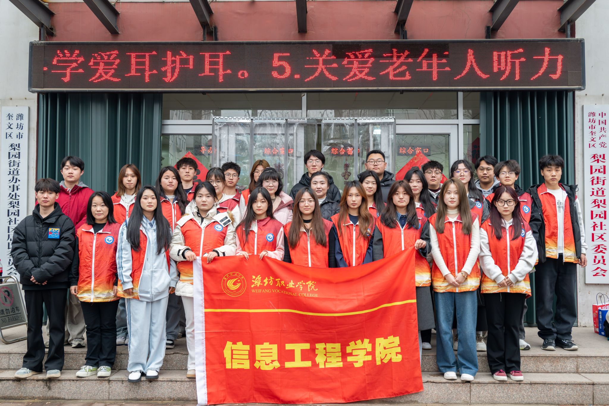 雷锋精神如同一盏明灯,指引着潍职学子在服务人民的广阔天地里,笃定追寻并实现人生价值。学院组织学生志愿者走进周边社区,开展清洁家园、义务维修等活动,以实际行动传递温暖,收获社区居民广泛赞誉。志愿者们手持宣传手册,耐心地向师生、市民讲解垃圾分类知识,引导大家养成绿色环保的生活习惯;在校园清洁日,同学们踊跃参与,清扫操场、花园,擦拭公共设施,以实际行动积极倡导绿色生活理念,守护我们共同的美好家园。此外,志愿者们还走进潍坊锦年华颐养中心,陪老人聊天、倾听心声,帮忙打扫房间、整理床铺,开展丰富的娱乐活动,让养老院处处洋溢着欢声笑语。积极参与“健康聆听 无碍沟通”潍坊市第二十六次全国爱耳日主题志愿服务活动,通过爱心陪伴、手语学习、健康服务等,为残障人士送去关怀,践行社会责任,为潍坊这座城市增添了独属于潍职的温暖底色。