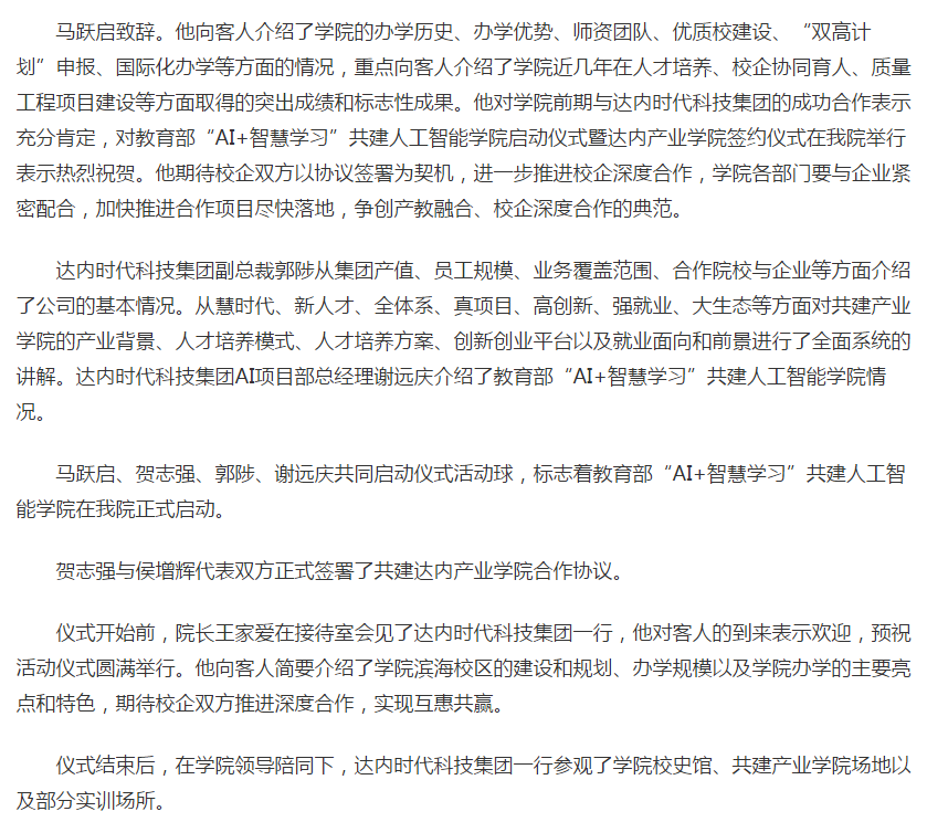 [齐鲁网]教育部“AI+智慧学习”共建人工智能学院启动仪式暨达内产业学院签约仪式在开云(中国)举行