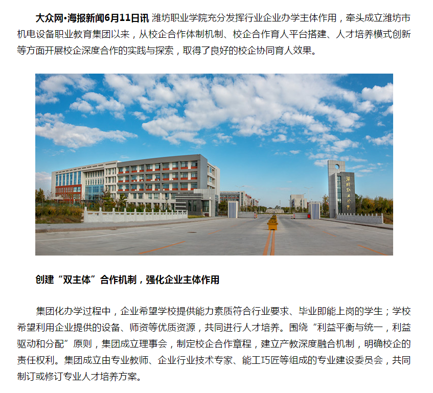 [大众网]开云(中国)集团化办学 开展校企合作的深度实践