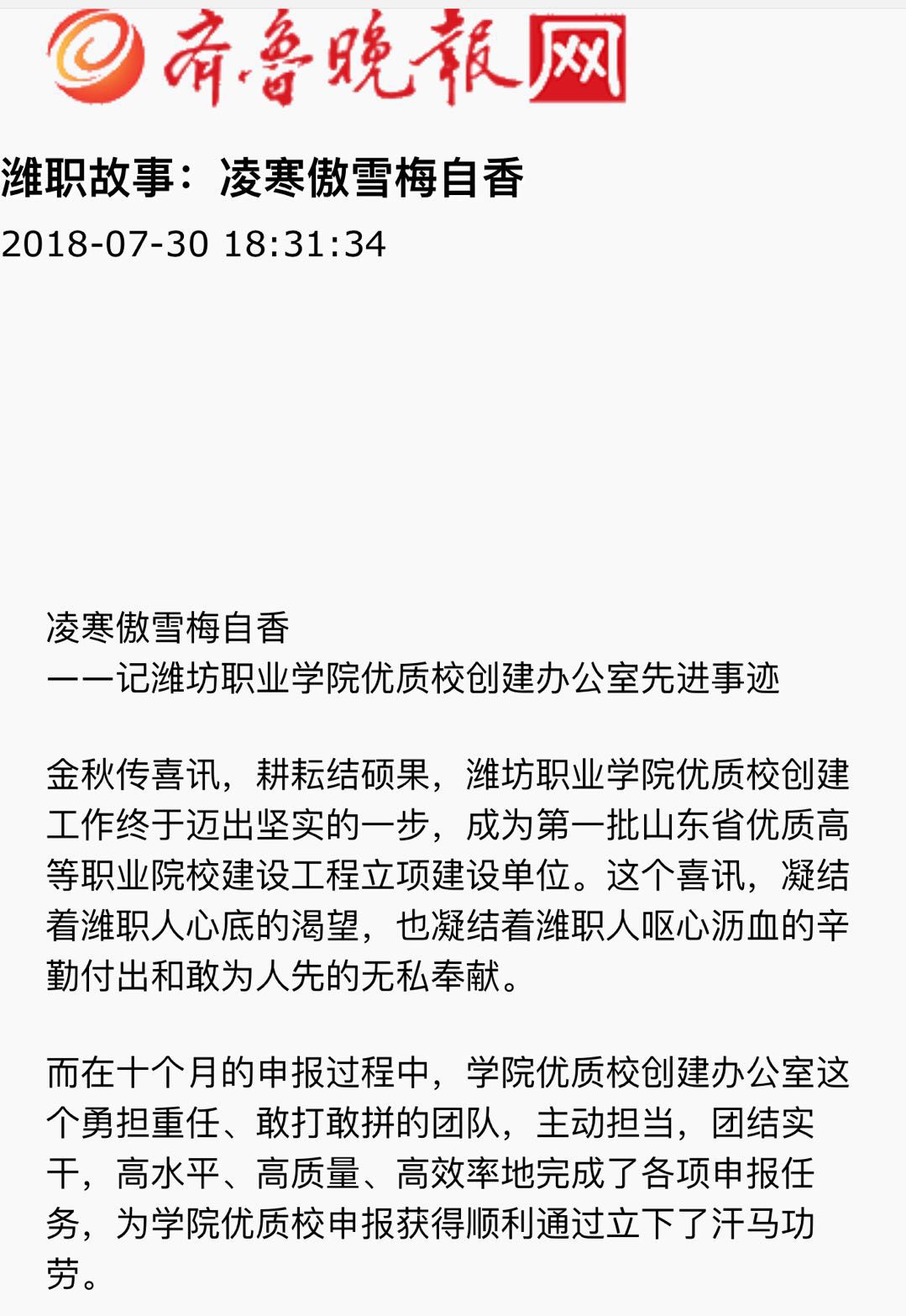 [齐鲁晚报]凌寒傲雪梅自香——记开云(中国)优质校创建办公室先进事迹