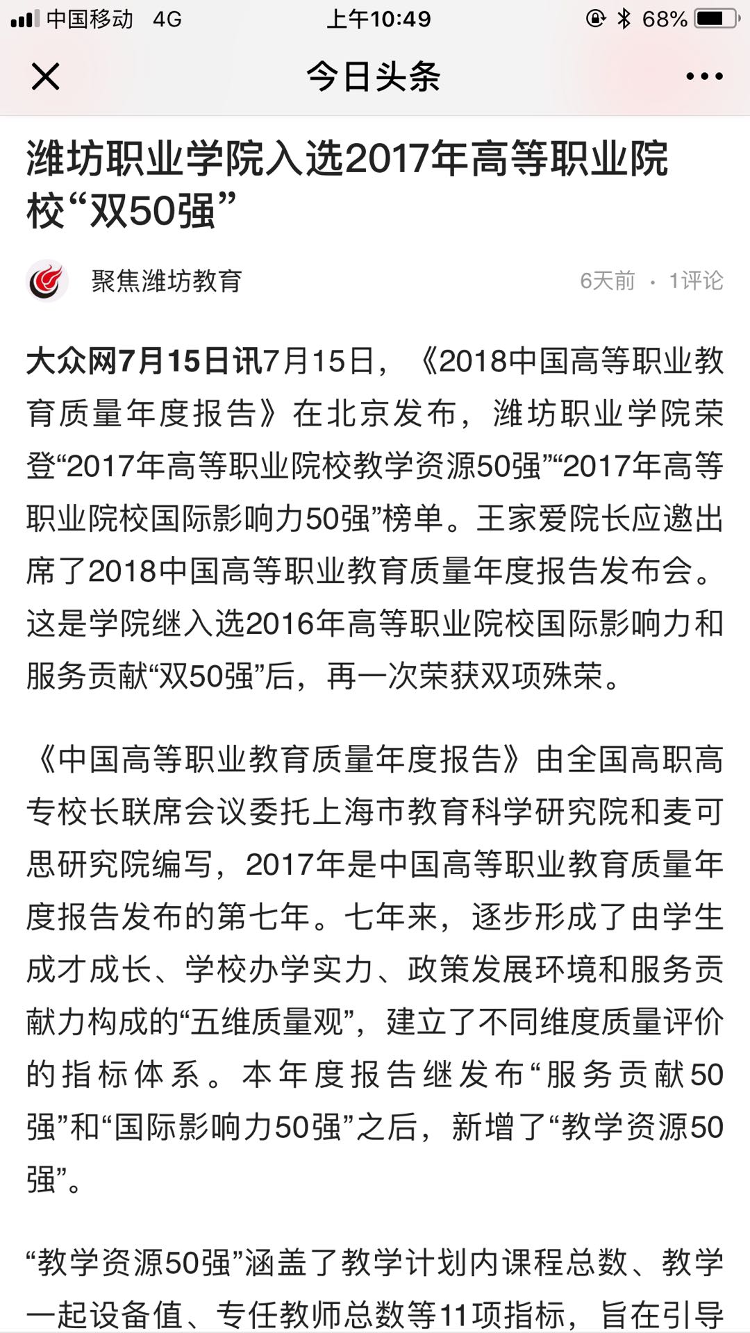 [今日头条]开云(中国)入选2017年高等职业院校“双50强”