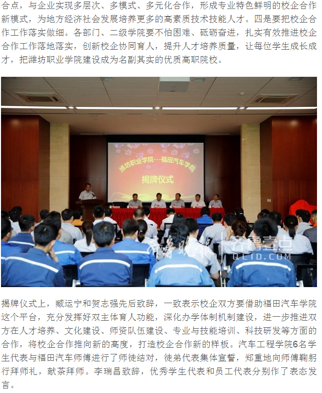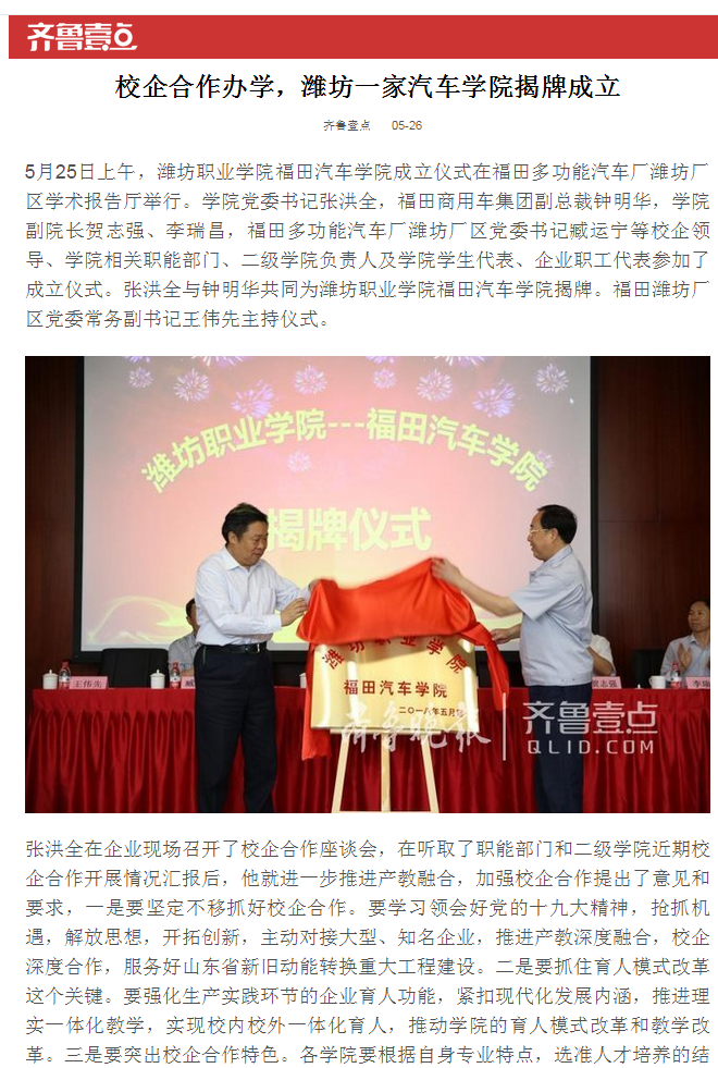 [齐鲁壹点]校企合作办学 潍坊一家汽车学院揭牌成立
