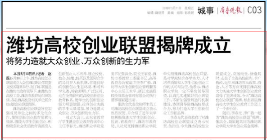 [齐鲁晚报]潍坊高校创业联盟揭牌成立
