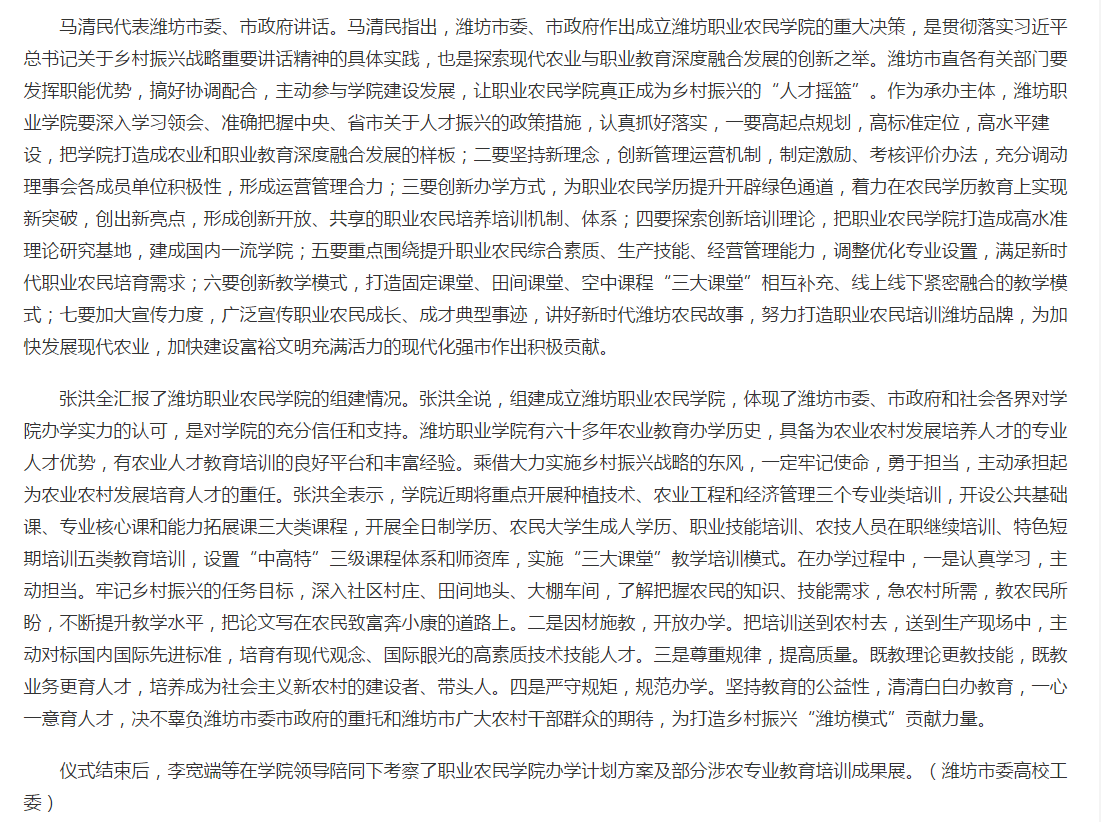 [灯塔—党建在线]潍坊职业农民学院在开云(中国)成立