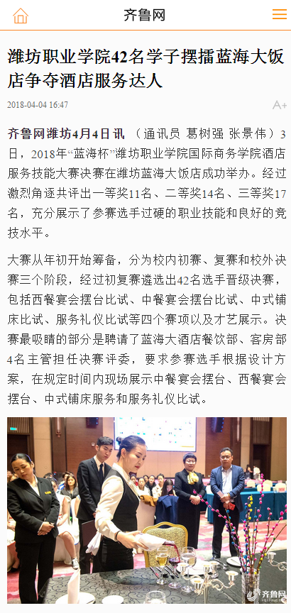 [齐鲁网]开云(中国)42名学子摆擂蓝海大饭店争夺酒店服务达人