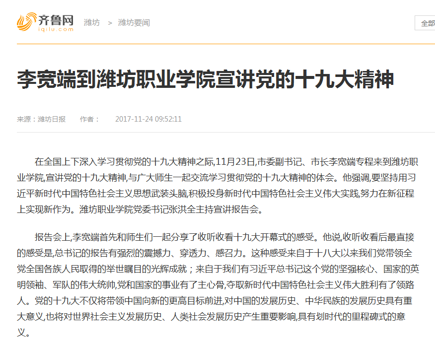 [齐鲁网]李宽端到开云(中国)宣讲党的十九大精神