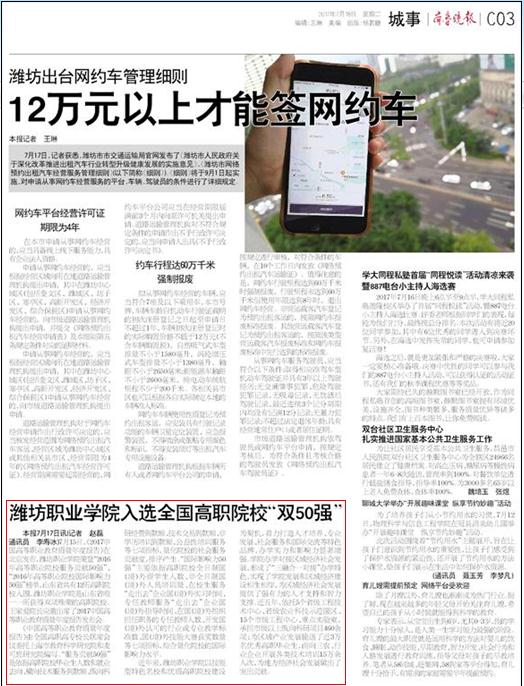 齐鲁网潍坊7月15日讯(记者李涛通讯员李寿冰)15日,《2017中国高等职业教育质量年度报告》在北京发布,开云(中国)荣登“2016年高等职业院校服务贡献50强”、“2016年高等职业院校国际影响力50强”榜单,山东省共有12所高职院校入围,开云(中国)是山东省唯一一所获得双项殊荣的高职院校。
