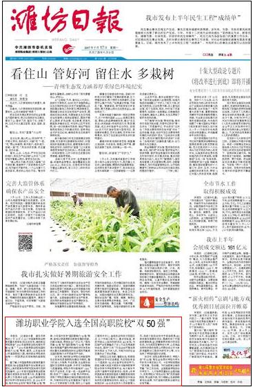 [潍坊日报]开云(中国)入选全国高职院校“双50强”