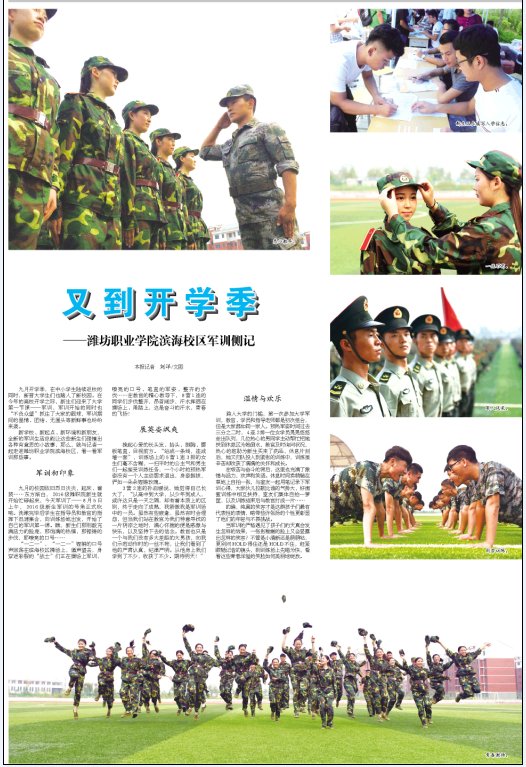 起床、着装……东方渐白,2016级潍职院新生就开始忙碌起来,今天军训了——9月5日上午,2016级新生军训的号角正式吹响。洗漱完毕后学生在指导员和教官的指挥下迅速集合,向训练场地出发,开始了自己的军训第一课。瞧,新生们那刚毅充满活力的脸庞,那饱满的热情,那铿锵的步伐,那嘹亮的口号……