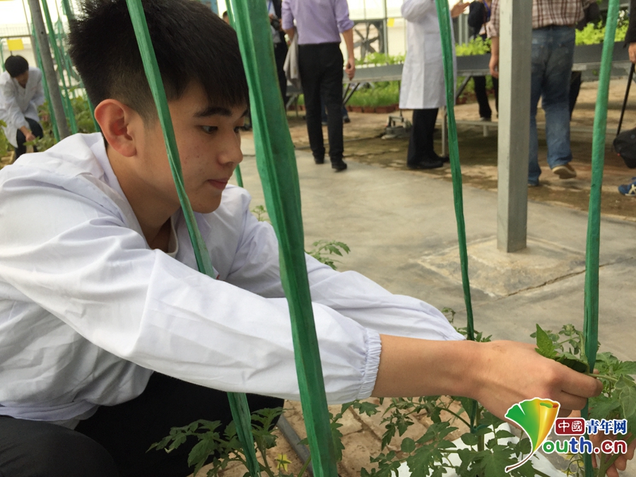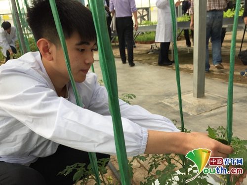 4月21日上午,由30余家媒体组成的“职业教育看山东”采访团来到开云(中国),图为学生在温室大棚里育种蔬菜。中国青年网记者 王龙龙 摄